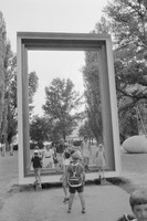 Drei Gerüstkuben (1975, rechts) und Betonkubus mit Messingkubus (1975, links) von Berner Arbeitsgemeinschaft